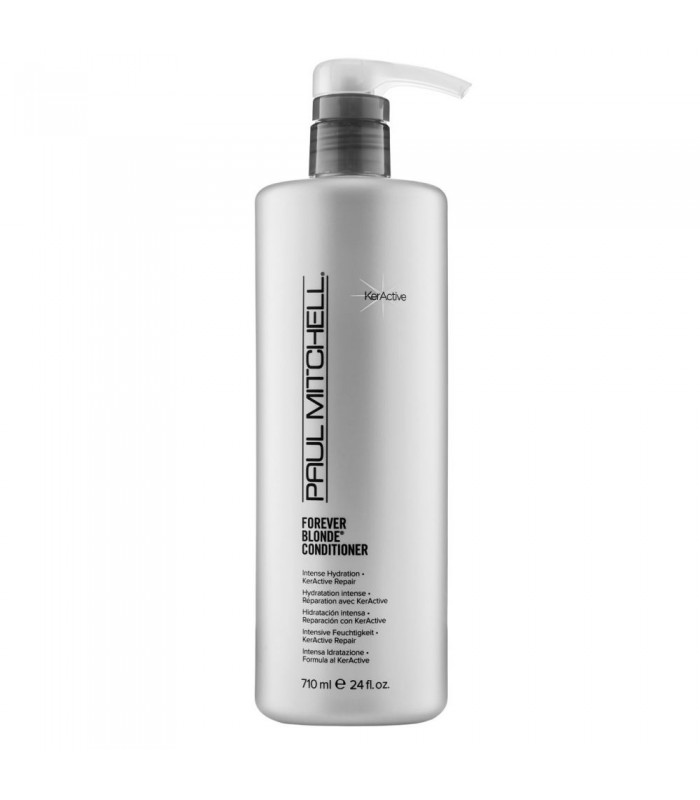 Repair and help brighten blonde hair with Forever Blonde® Conditioner from Paul Mitchell®. This conditioner for chemically treated hair deeply hydrates and detangles lightened and highlighted hair while helping to repair damage. Enhanced with KerActive protein and a special blend of botanicals, including safflower oleosomes and macadamia nut oil, it provides intensive nourishment to help improve elasticity, softness and shine.