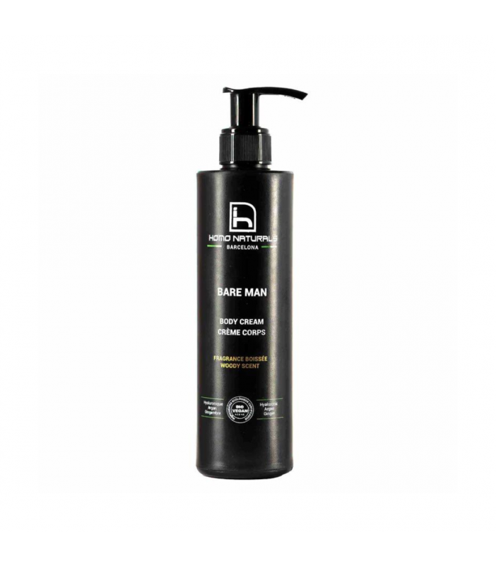 Bare Man ofrece una crema corporal premium para hombres, con una fórmula natural que hidrata, reafirma y regenera la piel. Con ingredientes como aceite de argán, extracto de jengibre y ácido hialurónico, esta crema garantiza una piel suave y tonificada. Certificada ecológica y vegana, libre de productos químicos agresivos y embotellada en material reciclable.