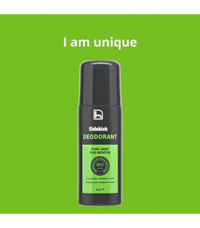 Sidekick Pure Mint es un desodorante natural sin aluminio ni alcohol que protege la piel de forma saludable con una fragancia refrescante a Menta pura. Con Aloe Vera y Alantoína en un práctico formato Roll on de 90 ml, este desodorante certificado bio inhibe naturalmente la proliferación de bacterias, ofreciendo una protección duradera y sin ingredientes nocivos.
